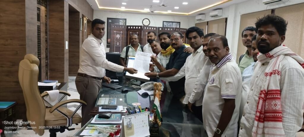 जगदलपुर:= दिनांक 06.11.2025 को अनुसूचित जाति/जनजाति समाज/अन्य पिछड़ा वर्ग/अल्पसंख्यक वर्ग एवं सभी मूल निवासी समाज के पदाधिकारी गणों एवं समाज के लोगों ने मुख्यमंत्री के नाम कलेक्टर सहाब को ज्ञापन सौंपा*