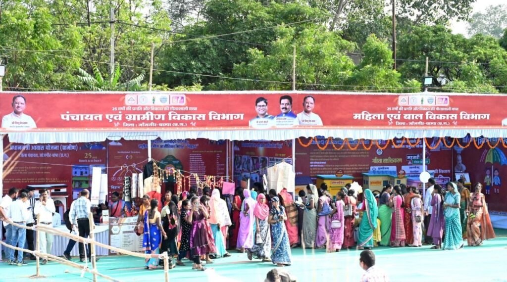 राज्य स्थापना दिवस के अवसर पर छत्तीसगढ़ की 25 वर्षों की प्रगति और विकास की अद्भुत झलक प्रस्तुत करती हुई विभिन्न विभागों की भव्य प्रदर्शनी स्टाल ने सबका मन मोह लिया। अतिथियों ने प्रदर्शनी स्थल का भ्रमण कर पंचायत एवं ग्रामीण विकास, महिला एवं बाल विकास, ग्रामोद्योग, कृषि विकास एवं किसान कल्याण, उद्यानिकी, मछली पालन, पशुधन विकास, पुलिस विभाग, पीएम सूर्यघर मुफ्त बिजली योजना, पुलिस विभाग, जनसंपर्क विभाग, आयुष्मान भारत और श्रम विभाग सहित विभिन्न विभागों द्वारा लगाए गए स्टॉलों का अवलोकन किया। सभी विभागों द्वारा 25 वर्षों की विकास, प्रस्तुत नवाचार, जनकल्याणकारी योजनाओं और उपलब्धियों की सराहना अतिथियों एवं दर्शकों द्वारा की गई। यह प्रदर्शनी छत्तीसगढ़ की विकास यात्रा, आत्मनिर्भरता और जनभागीदारी का उज्ज्वल प्रतीक बनी।