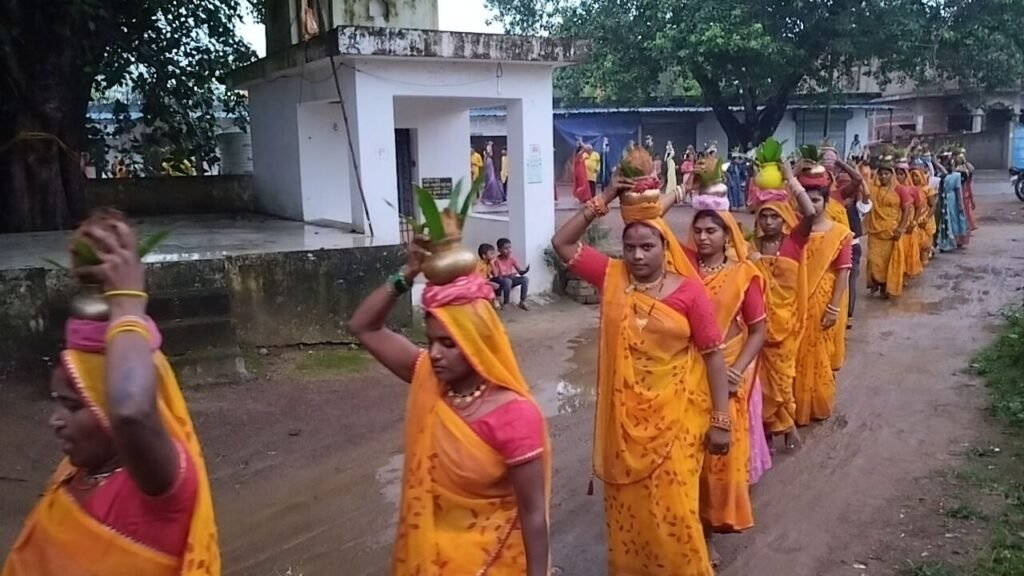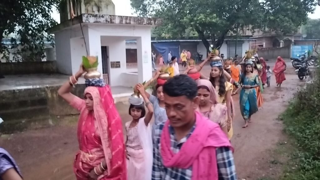 नवयुवक दुर्गा सेवा समिति अवरीद भाठापारा के द्वारा भव्य कलश यात्रा निकाला गया