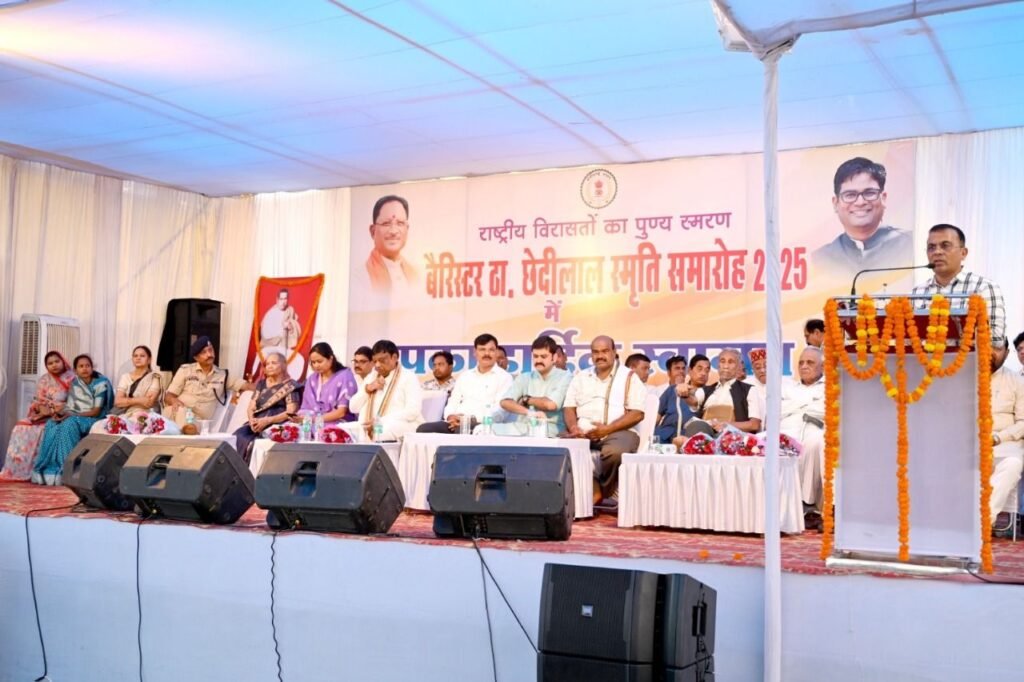 कलेक्टर श्री जन्मेजय महोबे ने कहा कि आज हम यहाँ एक विराट व्यक्तित्व, स्वतंत्रता संग्राम सेनानी एवं संविधान सभा के पूर्णकालिक सदस्य बैरिस्टर ठाकुर छेदीलाल की स्मृति में एकत्र हुए हैं। बैरिस्टर ठाकुर छेदीलाल का व्यक्तित्व बहुआयामी और समावेशी था। वे एक समृद्ध जमींदार परिवार से थे, किंतु उन्होंने वैभव और सुविधा का जीवन छोड़कर स्वतंत्रता संग्राम की कठिन राह चुनी। अंग्रेजी हुकूमत के विरुद्ध लड़ाई में उन्होंने इस अंचल ही नहीं, पूरे देश में महत्वपूर्ण भूमिका निभाई।